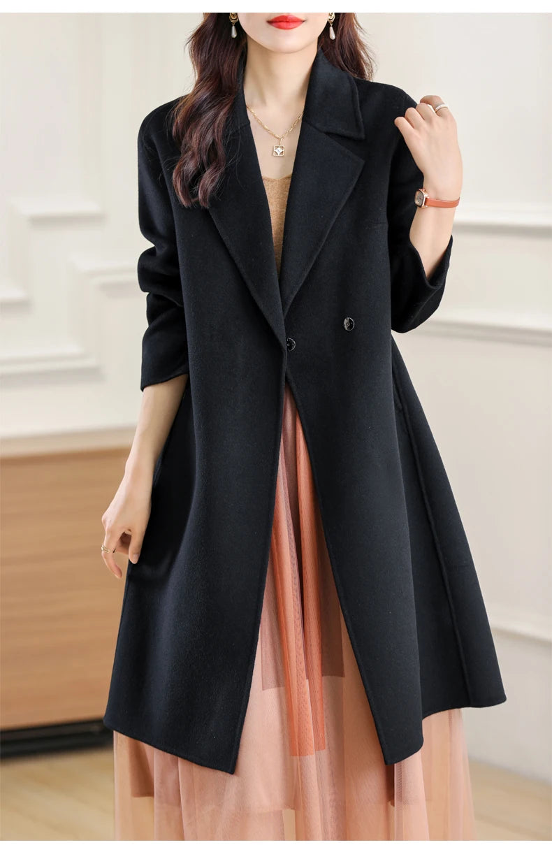 Lang model met gestructureerde revers voor een flatterende pasvorm